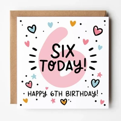 Lunella Stationery Happy 6th Birthday Card for Her Pink Age 6 Cute & Trendy Design Blank Inside With Kraft Envelope (Age 6)