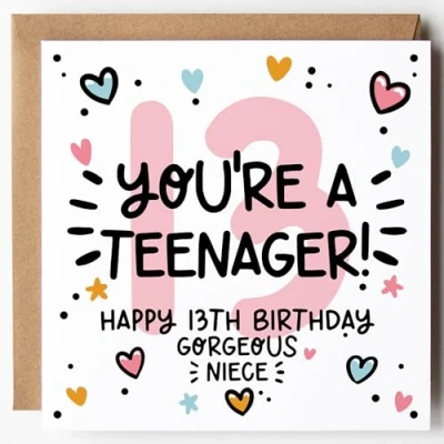 Lunella Stationery Niece Birthday Card Series Ages 10 20 Cute & Trendy Design Blank Inside With Kraft Envelope Age 13 (You're a Teenager)