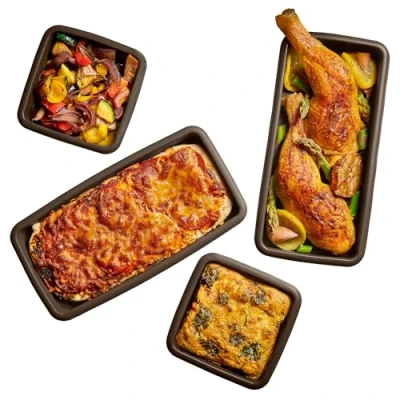 4 premium platinum silicone baking moulds All four moulds perfectly fill a conventional baking tray, each 2 moulds 11 x 11 x 3 cm and 11 x 24 x 3 cm Ideal for several small dishes at the same time Made from 100% premium platinum silicone: fruit acid resistant, food safe, tasteless and odourless, BPA-free Dishwasher-safe