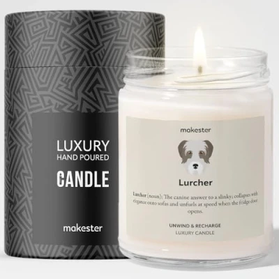 Lurcher Candle Over 100+ Breeds 220g Soy Wax Madagascan Vanilla & Jasmine Gift Dog Lover Candles by Makester