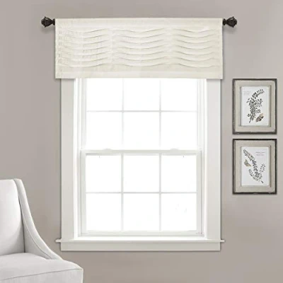 Soothing, decorative design with wavy, pleated pleats create a charming, textured window curtain valance. The sumptuous wave design is the ideal curtain for your shabby chic or country house decoration. Available in Blue, Blush, Dark Grey, Cream, White and Light Grey. Sold as a single valance sheet and perfect to brighten up any bedroom, living room or dining room. Curtain made of 100% polyester. Measures 18" high by 52" wide 5" pole pocket for easy installation. Hand wash cold with similar items and hang dry, dry clean recommended. Follow all care instructions.