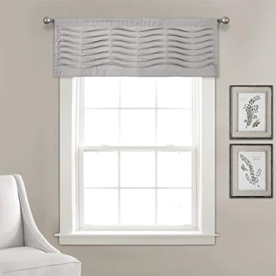 Calming, decorative design with wavy, folded pleats create a charming, textured window curtain valance. Lush Décor Wave Texture kitchen window valance is the ideal curtain for your shabby chic or farmhouse style decor. Available in a blue, blush, dark gray, cream, white and light gray valance. Sold as a single curtain valance and perfect to enhance any bedroom, living room or dining room window. 100% polyester curtain. Measures 18” H x 52” W and has a 1. 5” rod pocket for easy installation. Hand wash cold with similar items and hang to dry, dry clean recommended. Follow care instructions.