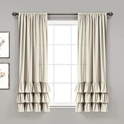 Lush Decor Allison Ruffle Window Curtain Panel Pair, 63" Long x 40" Wide, Neutral
