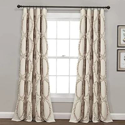 Ruffle Curtains: The Lush Decor Avon Window Curtain Panel showcases an all-over ruffle ribbon pattern that creates a feminine look with three-dimensional texture. These coquette curtains will make a beautiful statement in your home. Light Filtering Curtains: These light filtering curtains provide moderate privacy while helping to filter sunlight, allowing a soft glow to fill the space. The solid colors make them easy to style with your existing decor. Window Decor: These long curtains for windows measure 54 inches wide by 84 inches long and are sold as a single panel. Crafted from a microfiber fabric. Add this living room curtains to your coquette, farmhouse, vintage, or French country styled home. Easy to Install: This window panel set for living room offer seamless installation with its 3" rod pocket, easily slide it onto your curtain rod or by using clip rings (not included). Easy Care: To care for these curtains for living room, simply machine wash cold on the gentle cycle and tumble dry low. Use a steamer to release wrinkles, if needed. This window panel is STANDARD 100 by OEKO-TEX certified, all components have been tested and certified free from harmful substances. About Us: Lush Decor crafts beautiful home decor for every room, style and age. Our luxury-for-less styles are designed to inspire. From timeless neutrals, rich textures and vibrant colors, we help you dress your space to reflect your personal style. Lush Decor: Woman Founded, Women Led Brand