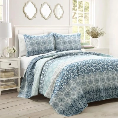 Boho Bedding Set: Transform your bedroom into a boho retreat with the Bohemian Stripe Cotton Quilt Set. Featuring a symphony of artistic patterns and a kaleidoscope of exquisite hues, this striped bedding set unveils a myriad decorative prints. Reversible Cotton Quilt: Show off your free-spirited personality with this king quilt set. Perfect for any age, this striped quilt gives you 2 looks in 1 set. Flip it over to reveal a geometric print, adding versatility to your boho bedroom decor. Complete Bedding Set: This 3 piece king size bedding set includes: 1 quilt 108" W x 92" L and 2 king pillow shams 36" W x 20" L. Ideal for boho or maximalist decor styles. Versatile Comfort: Crafted from 100% cotton fabric, this king size quilt offers softness and breathability. The lightweight cotton blend filling is perfect for any season. This king size bedding set is STANDARD 100 by OEKO-TEX certified, which means the fabric, dyes and all components have been tested in an independent laboratory and certified against a list of more than 350 harmful substances. Easy Care: Caring for this king quilt set is easy to maintain. Simply machine wash cold on the gentle cycle and tumble dry low for a quick refresh. About Us: Lush Decor crafts beautiful home decor for every room, style and age. Our luxury-for-less styles are designed to inspire. From timeless neutrals, rich textures and vibrant colors, we help you dress your space to reflect your personal style. Lush Decor: Woman Founded, Women Led Brand