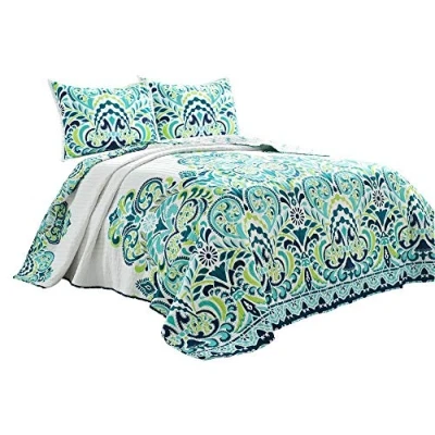 Lush Decor Clara Quilt, Cotton, Blue & Green, King