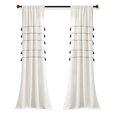 Lush Decor Farmhouse Boho Stripe Woven Tassel Yarn Dyed Cotton Window Curtain Panel Pair, 42" x 84", Ivory & Black