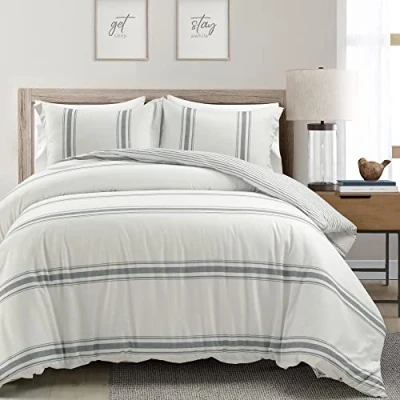 Lush Decor Farmhouse Stripe 3 Piece Duvet Cover Set, King, Dark Gray