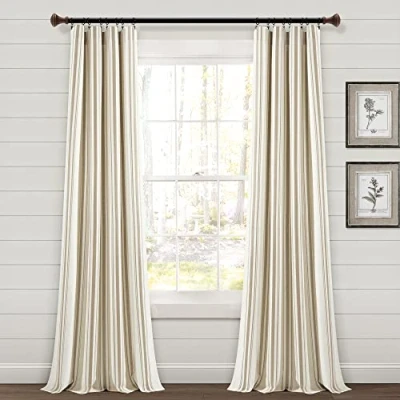 Lush Decor Farmhouse Stripe Yarn Dyed Cotton Window Curtain Panels Neutral 42X84 Set