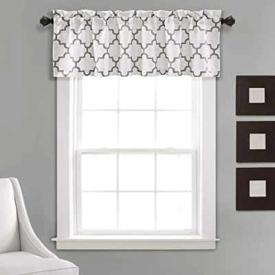 Lush Decor, Gray Bellagio Room Darkening Trellis Geometric Design Window Curtain Valance for Living, Dining, Bedroom, 52 x 18