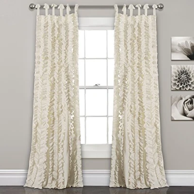 Lush Décor Sophia Ruffle window curtain is the ideal curtain for your shabby chic, modern or farmhouse decor. Elegant and delicate stripes of tight ruffles to brighten any bedroom, living room or dining room window. Curtains are not lined, but allow for some privacy and have tie top ribbon for easy installation. 2 panel curtain set made from 100% polyester and measures 84”H x 40”W. Easy to care for and safe to machine wash cold in a mesh laundry bag, gentle cycle and tumble dry low.