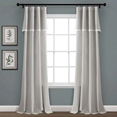Lush Decor, Light Gray Linen Lace Window Curtain Panel Pair, 84" x 38", 84 in 38