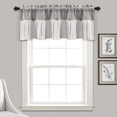 Lush Decor Linen Button Farmhouse Valance, 52" W x 18" L, Gray & Off white Rustic Kitchen Valance With Coconut Husk Detail