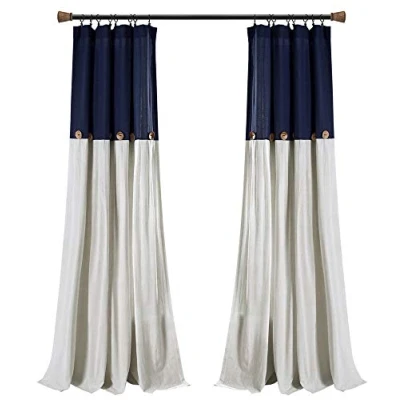 Lush Decor Linen Button Window Curtain Panel, Single, 40" W x 84" L, Navy & White Country Curtains Rustic Color Block Modern Farmhouse For Living Room, Bedroom Dining Room