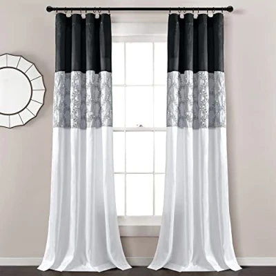 Lush Decor Maria Window Curtain Panel (Single Panel), 84" x 42", Black & White