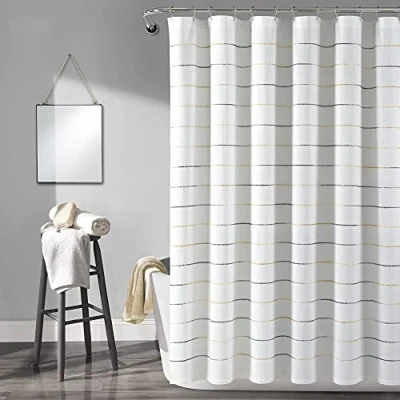 Lush Decor Ombre Stripe Yarn Dyed Cotton Shower Curtain, 72" x 72", Yellow & Gray