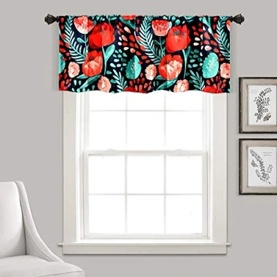 Floral Curtains: Brighten your bathroom or kitchen windows with the Lush Decor Poppy Garden Valance Curtain. Featuring a lively botanical print of blooming poppy flowers and leaves, these floral valances bring the charming garden aesthetic inside. Room Darkening Curtains: These room darkening valances provide moderate privacy while helping to filter sunlight. Window Decor: These floral valance curtains are crafted from a soft microfiber fabric and are unlined. Sold as a single panel, measuring 52 inches wide by 18 inches long. These kitchen curtains are perfect for farmhouse or cottage core decor styles. Easy to Install: This window valance offers seamless installation with a 3" rod pocket, allowing you to easily slide it onto your curtain rod or using clip rings (not included). Easy Care: Caring for these floral bathroom curtains is easy, simply machine wash cold on the gentle cycle and tumble dry low. Use an iron on low heat to release wrinkles if needed. About Us: Lush Decor crafts beautiful home decor for every room, style and age. Our luxury-for-less styles are designed to inspire. From timeless neutrals, rich textures and vibrant colors, we help you dress your space to reflect your personal style. Lush Decor: Woman Founded, Women Led Brand