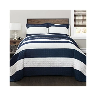 Lush Decor Quilt Striped Pattern 2 Piece Bedding Set, Polyester Cotton Blend, Navy & White, Twin