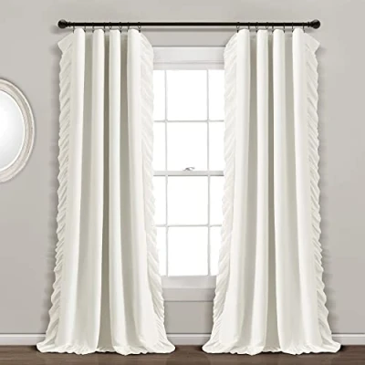 Charming Curtains: Add beautiful texture to your space with our Reyna Ruffle 100% Blackout Window Curtain Panel. With a romantic cascading ruffle border, this elegant design fits many decor themes such as traditional, Parisian chic, cottage and farmhouse. Blackout Lining: This panel has a 100% blackout lining that is energy efficient and ensures privacy in your home. Ideal for uninterrupted sleep, day or night, this curtain blocks out sunlight, reduces external noise, and keeps room temperatures stable. Window Decor: This charming blackout curtain panel measures 54 inches wide by 84 inches long, is crafted from soft microfiber, and sold as a single panels. This curtain would look fabulous in your bedroom, living room, dining room or even a nursery. Easy to Install: These window panels offer seamless installation with its 3" rod pocket, allowing you to easily slide it onto your curtain rod, or give the illusion of longer curtains, using clip rings (not included). Care & Maintenance: To maintain these window panels we recommend dry cleaning, or machine wash separately in cold water on the gentle cycle and tumble dry on low. If needed, use only non-chlorine bleach for cleaning or a steamer to release wrinkles. About Us: Lush Decor crafts beautiful home decor for every room, style and age. Our luxury-for-less styles are designed to inspire. From timeless neutrals, rich textures and vibrant colors, we help you dress your space to reflect your personal style. Lush Decor: Woman Founded, Women Led Brand