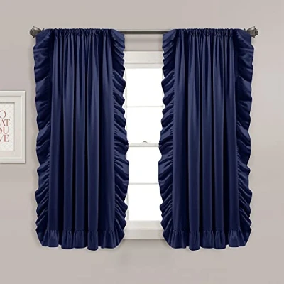 Lush Decor Reyna Ruffle Window Curtain Panel Set for Living, Dining, Bedroom (Pair), 54" W x 63" L, Navy