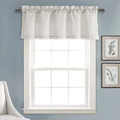 Lush Decor Rosalie Faux Linen Window Curtain Valance, 18" L x 54" W, White