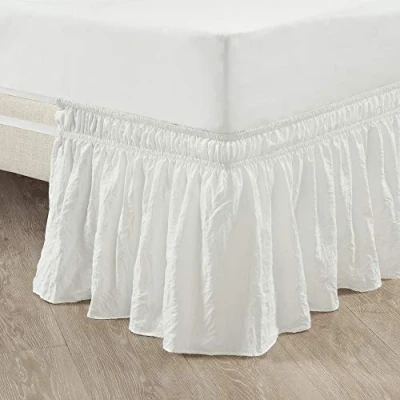 Lush Decor Ruched Ruffle Elastic Easy Wrap Around Bedskirt, Queen/King/Cal King, Off White