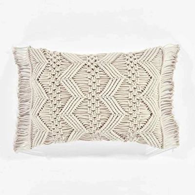 This reversible decorative throw pillow cover has a unique cotton macrame rope design on the front, while the back is soft 100% cotton fabric. Use it in your bedroom, living room, or anywhere you want to create a textured boho style look. This uniquely designed pillow cover can be used during any season. Use it alone or as part of a curated group of decorative throw pillows. This rectangular accent pillow cover measures 13 inches high by 20 inches wide, with a three-inch fringe on two edges. It is a standard size that is large enough to make an impact on your design but not so big that it will take over the look of the room. Adding decorative pillows to your bedroom, living room, home office, nursery or den is among the most inexpensive ways to change up the look of your room. It's even more affordable when you use the same insert repeatedly and only change the pillow cover with each season or each room makeover. Nothing adds comfort and character to your sofa, loveseat, chair or bed like a stylish pillow. High impact at accessible prices, decorative pillows are a quick and easy way to pull together a room and tell your decor story. Update your style or create a fresh seasonal look with our full line of pillow covers and inserts (each sold separately).