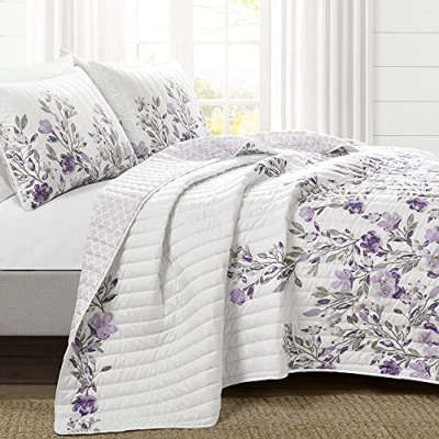 Lush Decor Tanisha Reversible 5 Piece Quilt Set, Gray & Purple, Full/Queen