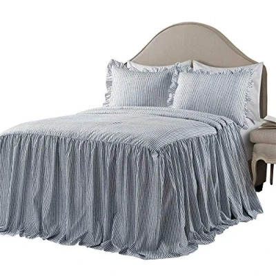 Lush Decor Ticking Stripe Bedspread Navy Vintage Chic Farmhouse Style Lightweight 3 Piece Set Full, Polyester