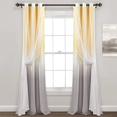 Brighten up your space with this attractive layered curtain panel. The sheer overlay gives this curtain added texture and numerous styling options. Introduce trendy ombre transitioning color into your home when you hang this curtain panel. This window curtain has it all - fashion, color balance and texture. Whether you are brightening up your living space or adding style to the bedroom, this curtain is sure to bring an optimistic vibe. Have fun using the sheer tie back to experiment with new ways of styling this layered panel. Be inspired by the ombre design and added dimension to bring these fashionable elements to the rest of your interior. Simply slide a curtain rod through the grommets when styling. The curtain measures 84 inches long by 38 inches wide and it is sold as a single panel. Please refer to label for full care instructions.