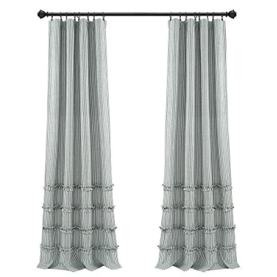 Lush Decor Vintage Stripe Yarn Dyed Cotton Window Curtain Panel Pair, 84" x 40", Denim Blue