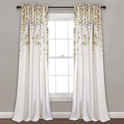 Elegant Florals: The Weeping Flower Room Darkening Window Curtain Panel Set features a calming, decorative design with yellow and gray flowers cascading down on a vine. It's a charming modern piece that also delivers room darkening efficiency. Room Darkening: These curtains help to block natural light, ensure privacy, reduce outside noise, and regulate the room's temperature. They significantly darken a room, but still allow some light to fill your space, creating a cozy and serene atmosphere. Premium Quality: Add a touch of spring and brighten up your space with these window panels, measuring 52 inches wide by 108 inches long + 2 inch header. Invest in quality and longevity with these unlined, room darkening curtains, crafted from microfiber. Easy Installation: Sold as a set of 2 panels, these curtains offer seamless installation with its 3" rod pocket, allowing you to easily slide it onto your curtain rod or hang by using clip rings. The 2" ruffled header also adds charm to your window decor. Easy Care: Caring for this window curtain set is easy to maintain, simply machine wash cold on gentle cycle, use non-chlorine bleach only when necessary, and tumble dry on low. Use an iron on low heat to release wrinkles if needed. About Us: Lush Decor crafts beautiful home decor for every room, style and age. Our luxury-for-less styles are designed to inspire. From timeless neutrals, rich textures and vibrant colors, we help you dress your space to reflect your personal style. Lush Decor: Woman Founded, Women Led Brand