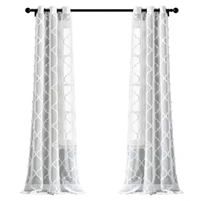 Lush Decor White Avon Trellis Grommet Sheer Window Curtain Panel Pair (84" x 38")