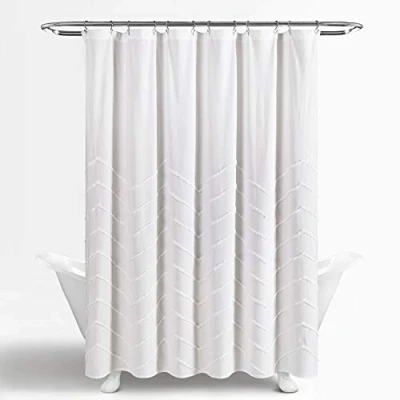 SHOWER CURTAINS: This high-quality, luxury shower curtain is both functional and stylish. With chevron stripes, the long cotton curtain adds style as it contains water in your bathroom. QUALITY: These modern shower curtains not only have a fashionable design but also are durable and washable. Made with 100% cotton, these curtains can be cleaned in the washing machine in cold water. VIBRANT TEXTURE: We've created this shower curtain with a textured pattern to add elegance to your bathroom. The chenille woven chevron design is a white color to match the background for a neutral look. FEATURES: Measuring 72" H x 72" W, this curtain is wide enough for most showers or baths. To care for the curtain, wash in the washing machine with cold water and tumble dry on low. LUSH DECOR: We offer innovative and affordable designs that are on trend yet unique. From neutral solids to colorful boho designs, our team of in-house designers offers high-quality products that everyone can enjoy.