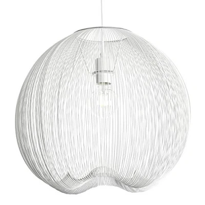 Large white wired metal pendant light, rounded round shapes Dimensions: diameter 45 cm x height 41.5 cm Bulb: E27 socket, maximum 40W bulb or 5W LED bulb (not included) 1 year warranty (excluding breakage) Modern, contemporary design light for dining room, living room, reception room, restaurant, hotel..