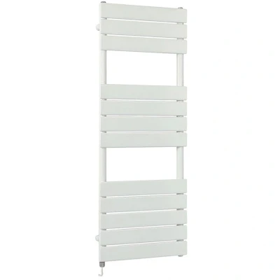 Lustro Electric Modern White Flat Panel Heated Towel Rail Radiator with Simple Heating Element 1200mm x 450mm Milano