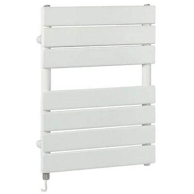 Lustro Electric Modern White Flat Panel Heated Towel Rail Radiator with Simple Heating Element 600mm x 400mm Milano