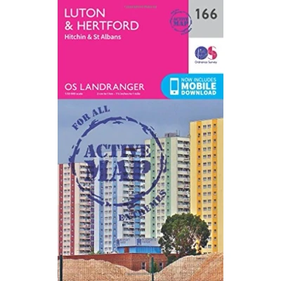 Luton & Hertford Map Weatherproof Hitchin St Albans Ordnance Survey OS Landranger Active 166 England Walks Cycling Days Out Maps Adventure