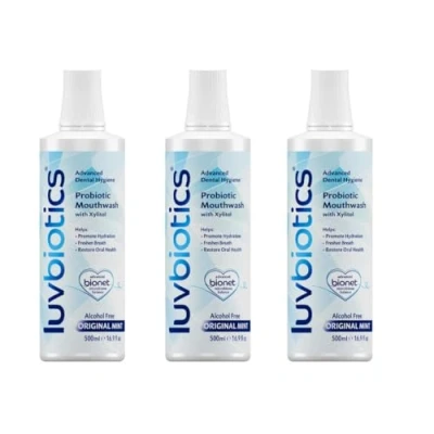 Luv Biotics Alcohol Free Mouthwash with Oral Probiotics, Xylitol & Aloe Vera 3 x 500ml