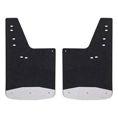 UNIQUE FLASH. These custom mud flaps feature unique 18-gauge stainless steel splash guard plates on the bottom edge. These plates are polished for a stylish accent, and they help prolong the life of the mud guards HIGHLY DURABLE. Constructed from 3/8-inch recycled rubber, these mudflaps are built to withstand tough jobs. Their textured surface also helps hide scuffs, scratches and grime, maintaining a cleaner look EASY TO INSTALL. These bolt on mud guards offer easy installation on your truck. They come with corrosion-resistant hardware and strong, galvanized steel brackets COMPLETE KIT. These custom mud flaps fit select model years of the Ford F250 Super Duty, F350 Super Duty, F450 Super Duty and F550 Super Duty International products have separate terms, are sold from abroad and may differ from local products, including fit, age ratings, and language of product, labeling or instructions.