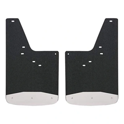 UNIQUE FLASH. These custom mud flaps feature unique 18-gauge stainless steel splash guard plates on the bottom edge. These plates are polished for a stylish accent, and they help prolong the life of the mud guards HIGHLY DURABLE. Constructed from 3/8-inch recycled rubber, these mudflaps are built to withstand tough jobs. Their textured surface also helps hide scuffs, scratches and grime, maintaining a cleaner look EASY TO INSTALL. These bolt on mud guards offer easy installation on your truck. They come with corrosion-resistant hardware and strong, galvanized steel brackets COMPLETE KIT. These custom mud flaps fit select model years of the Chevy Silverado 1500, 2500 HD or 3500 HD and GMC Sierra 1500, 2500 HD or 3500 HD International products have separate terms, are sold from abroad and may differ from local products, including fit, age ratings, and language of product, labeling or instructions.