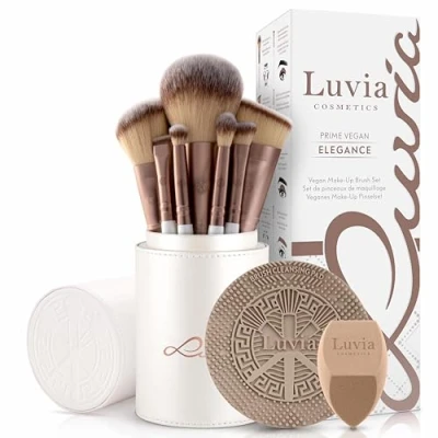 All in one make-up brush set: the 15-piece cosmetic brush set contains all the essential beauty tools for a full face make-up. From the classic daily look to real make-up art, with the Luvia brushes, your look can be achieved anytime and anywhere. Recommended by make-up artists: precision meets smoothness with Luvia beauty brushes. With our brush set, you can apply foundation, powder, blush or eye shadow evenly and targeted. Create your most beautiful looks now! Velvety soft and skin-friendly: the vegan nurai hair is extra gentle on sensitive skin. Compared to human hair, it is also particularly durable, ultra-soft and easy to clean. Give your loved one or yourself a soft feeling on the skin The gift for make-up lovers Reward your favourite people with this premium set. Elegant brush handles in mother-of-pearl white and shiny ferrules in coffee brown make the professional brushes the perfect gift for women and cosmetic-savvy men. Exclusive extras: In the elegant brush holder, you can store your make-up tools safely and in style. With the practical cleaning pad, you get brush and make-up sponge quickly and hygienically clean