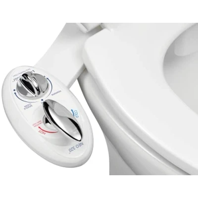 Luxe Bidet Neo 320 White Self Cleaning Dual Nozzle Hot and Cold Water Non Electric Mechanical Toilet Attachment, 17 x 10 3 inches