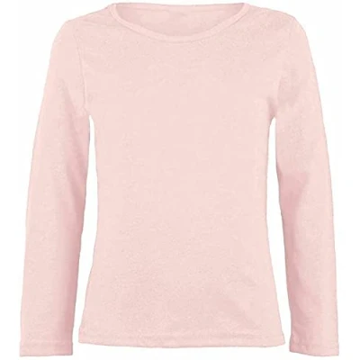 Amazon LUXE DIVA Girls Boy Kids Plain Basic Long Sleeve Round Neck T-Shirt Stretch School Tee Top 2-13 Years Peach