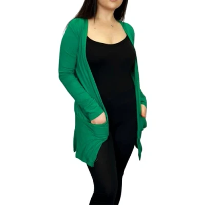 LUXE DIVA Ladies Long Sleeve Pocket Cardigan Womens Top Sizes 8 26 Jade Green