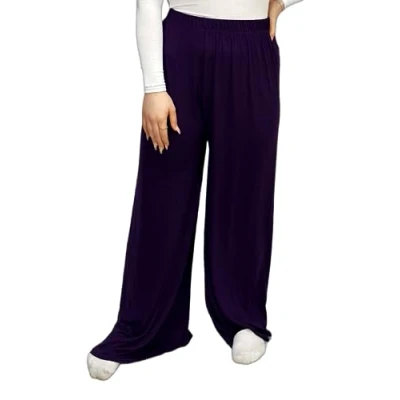 LUXE DIVA Ladies Palazzo Wide Leg Flared Elasticated Stretch Plus Size Plain Trousers 8 26 Purple