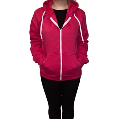 LUXE DIVA Ladies Plain Colour Hoodie Womens Fleece Hooded Top Zip Zipper Sweatshirt Available in 22 Colours Plus Sizes Small XXXXXL Fuchsia
