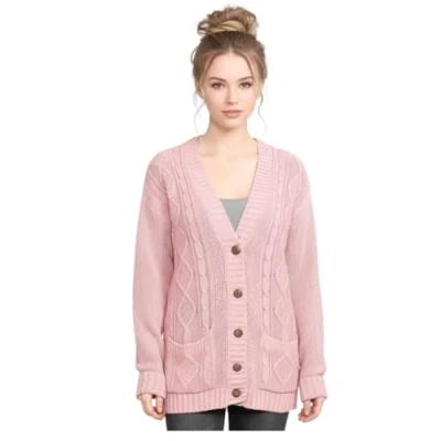 LUXE DIVA New Womens Everyday Long Sleeve Button Top Ladies Chunky Aran Cable Knit Grandad Cardigan UK Size 8 26 Baby Pink