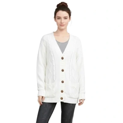 LUXE DIVA New Womens Everyday Long Sleeve Button Top Ladies Chunky Aran Cable Knit Grandad Cardigan UK Size 8 26 White