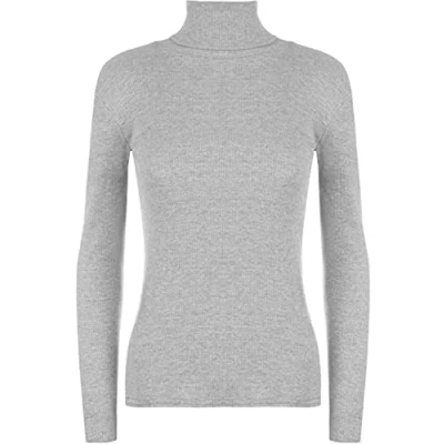 LUXE DIVA Women Ladies Ribbed Stretch Polo Turtle Neck Rib Top Jumper UK Size S/M XXXL Grey